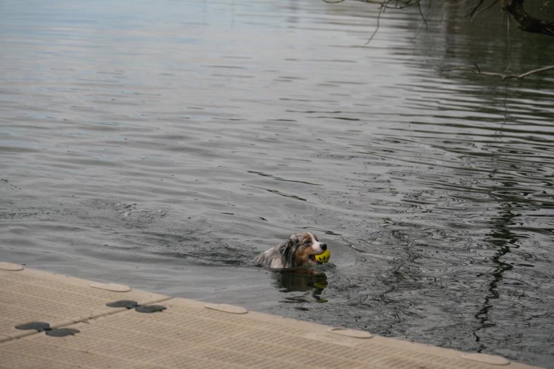 Besides the big grassy area, there is a small underpass that leads to the lake. Here both you and your dog can enjoy a swim. Dogs are not allowed on the dock, but the water access point is quite close to it. There is also a water fountain near the shore for a fresh drink after.